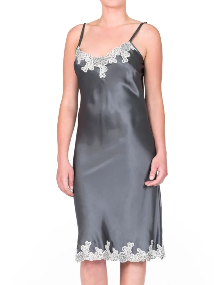 Seidennegligé Sakhali antrazith mit Spitze von Gattina – 1B-Ware