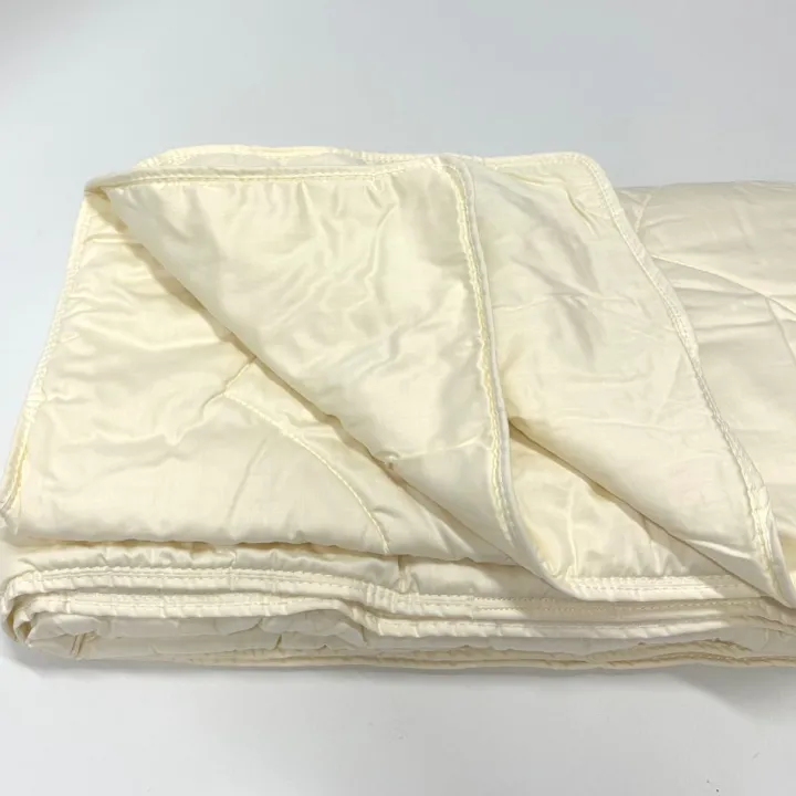 Die Sannwell Schafwolle Steppdecke hat einen beigen Oberstoff aus 100% Baumwolle Satin.