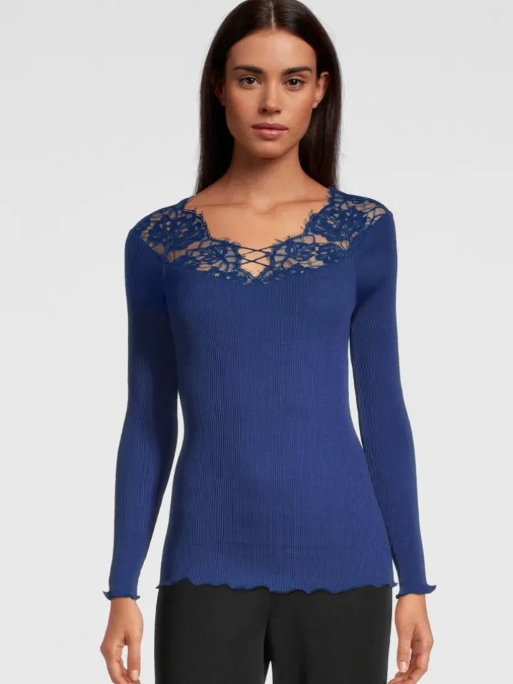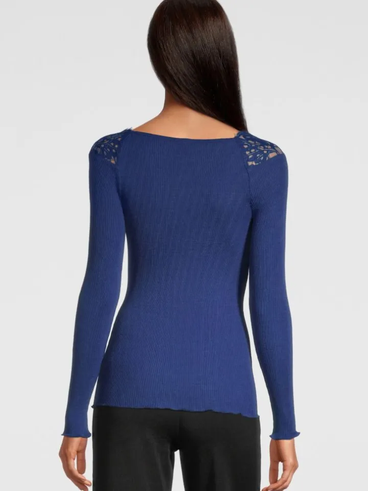 Merinowolle-Seide Langarm-Shirt royalblau von Oscalito