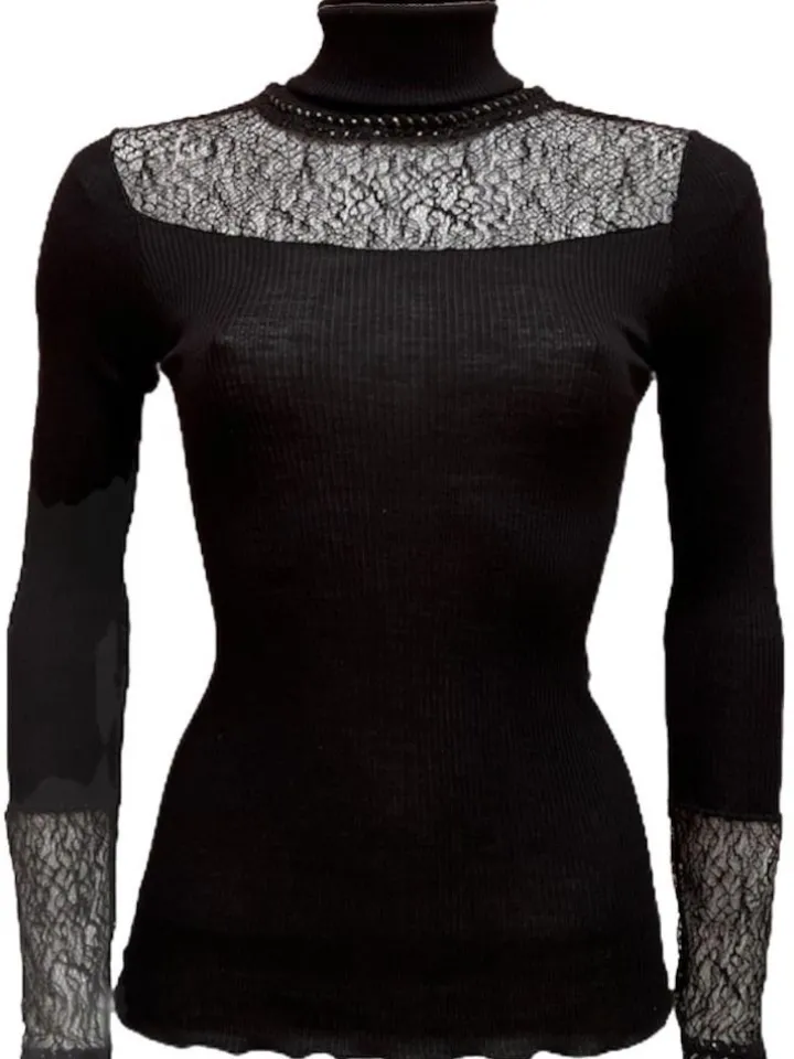 | Merkmale | blickdicht, Langarm, Rollkragen, mit Spitze, mit Schmuck |