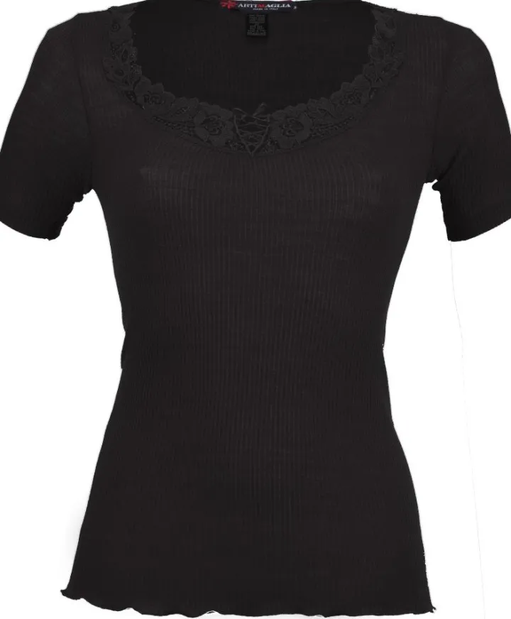 Merinowolle-Seide Kurzarm-Shirt schwarz oder beige von Artimaglia