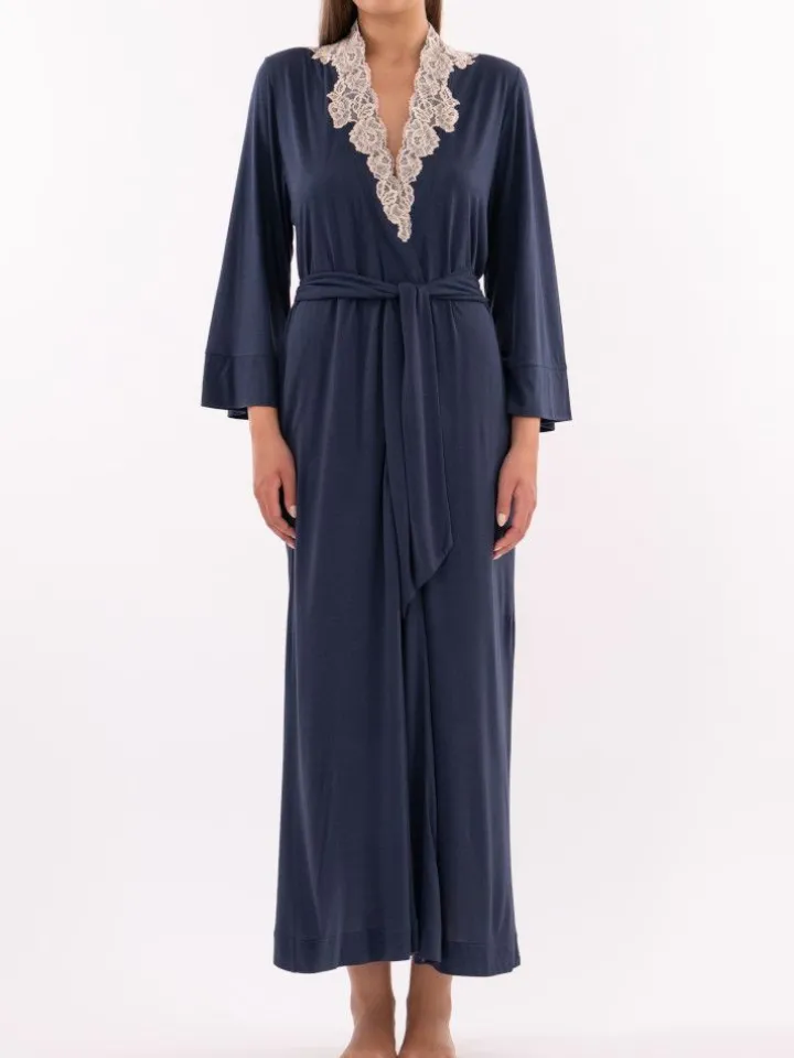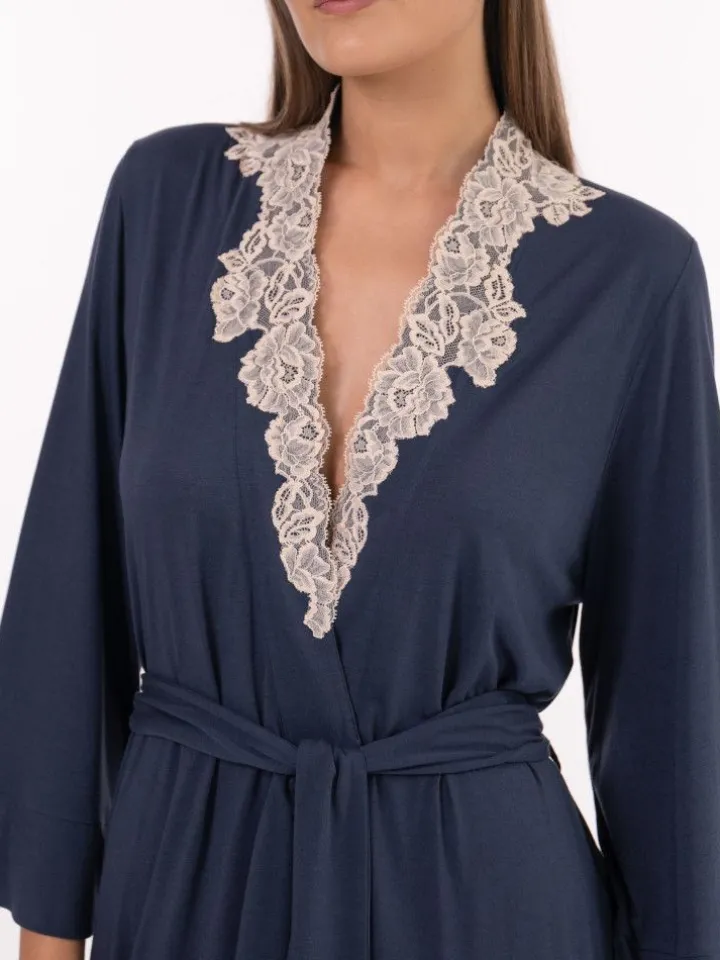 3/4-Ärmel Morgenmantel aus Modal Jersey mit Spitze von Verdiani