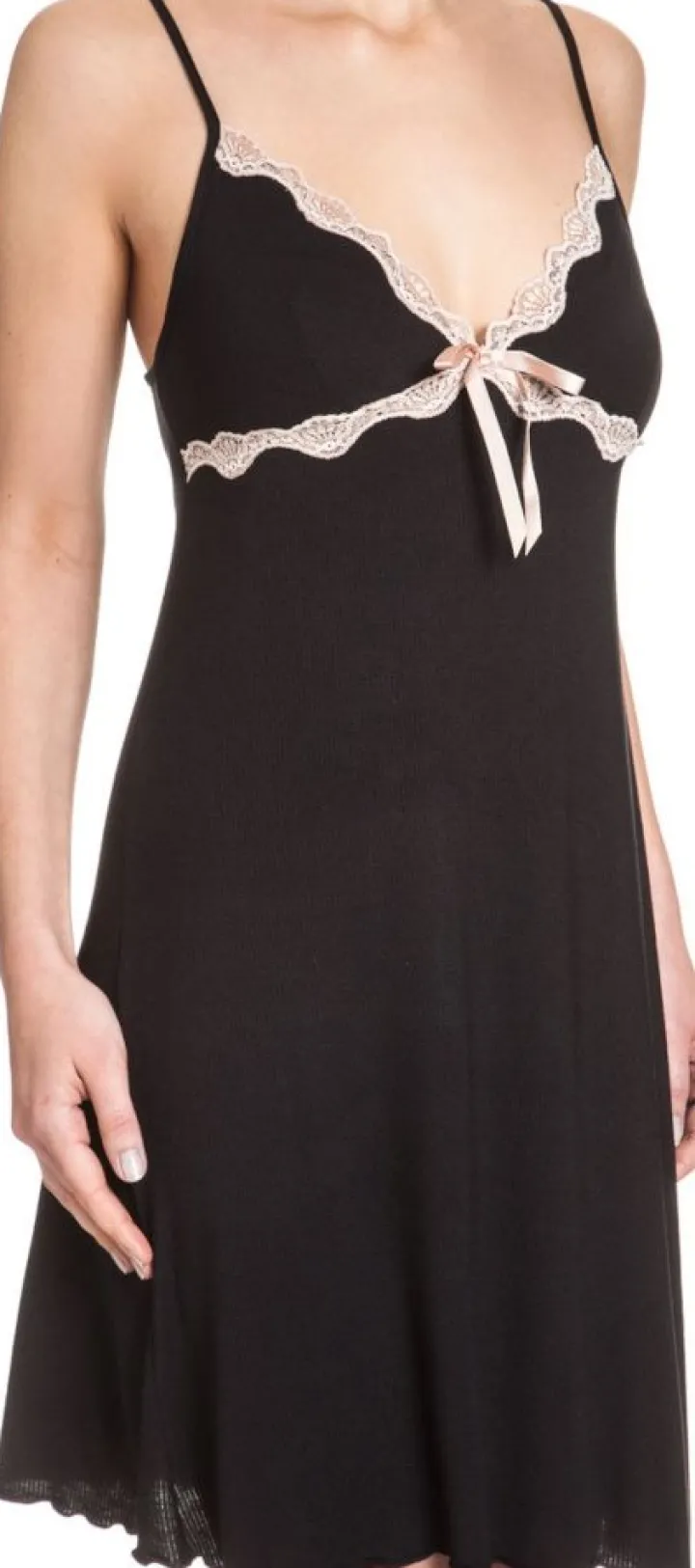 Dieses Baby-Doll ist eine bequeme Kombination von super-softem Jersey aus Modal mit einer feinen, weichen Wäschespitze. Dieses unkomplizierte Spaghettiträger-Nachthemd ist eine Nachtwäsche für jeden Tag von Gattina Dessous.