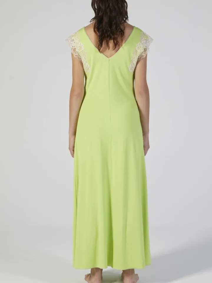 Modal Neglige lang Kiwi grün mit Spitze von Verdiani