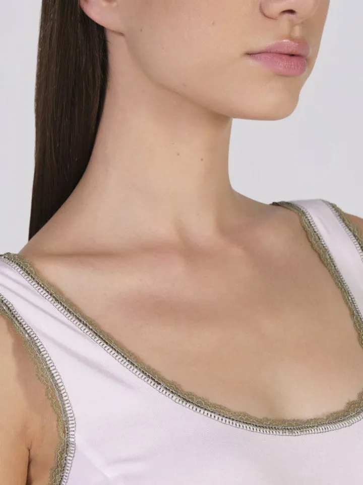 | Merkmale | breite Träger, ärmellos, mit Spitze |