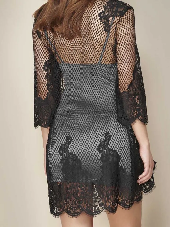 Morgenmantel Valentina aus Netzstoff und Spitze von Escora