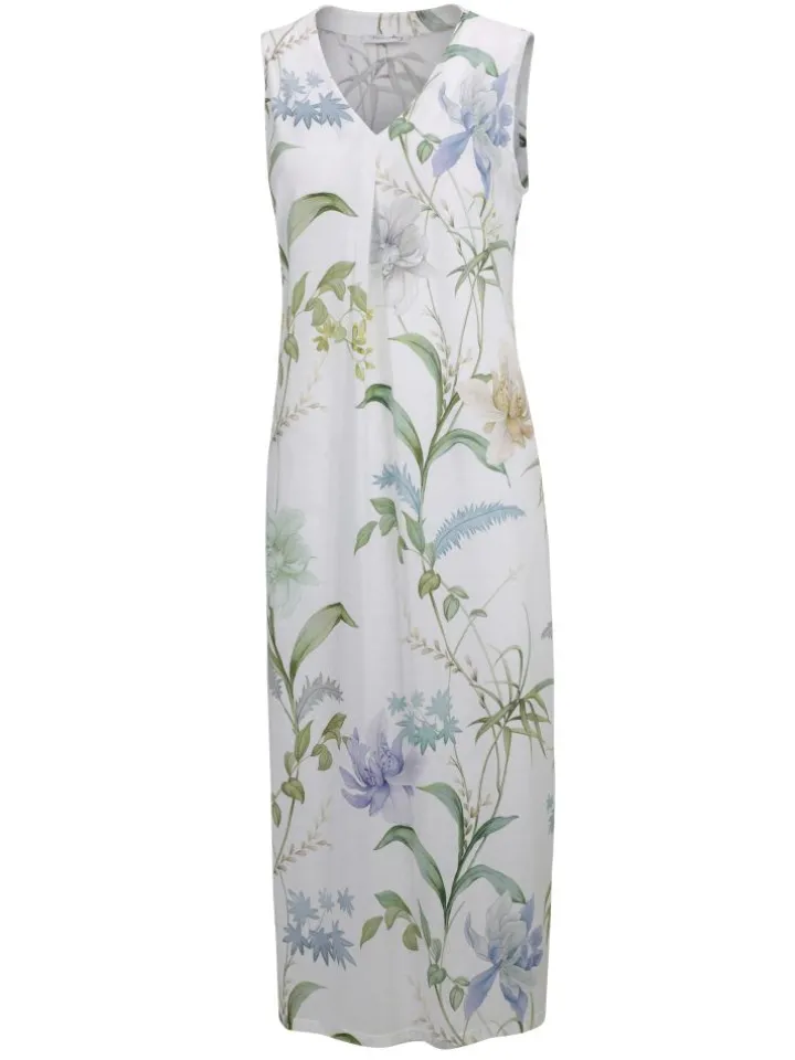 Dieses klassische, länger geschnittene Nachthemd ist bei uns in weiß mit blauem Blumenmuster Print erhältlich.