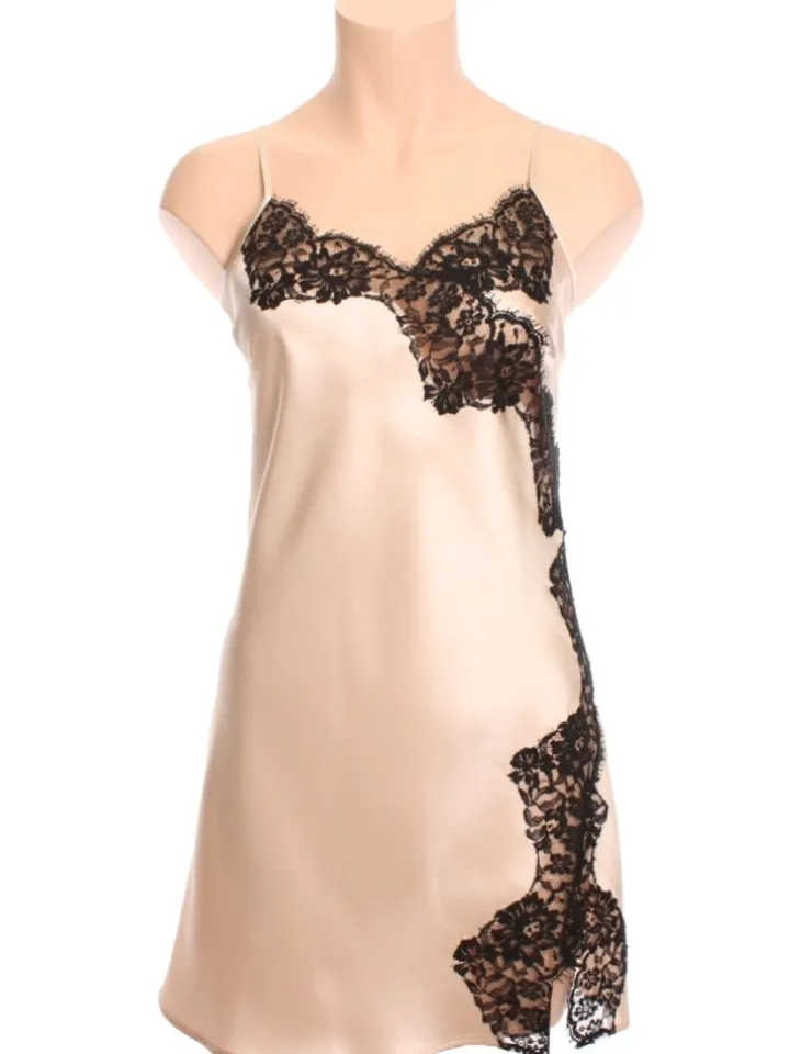 Luxus Seidenneglige kurz mit Calais Spitze Flavia von Marjolaine