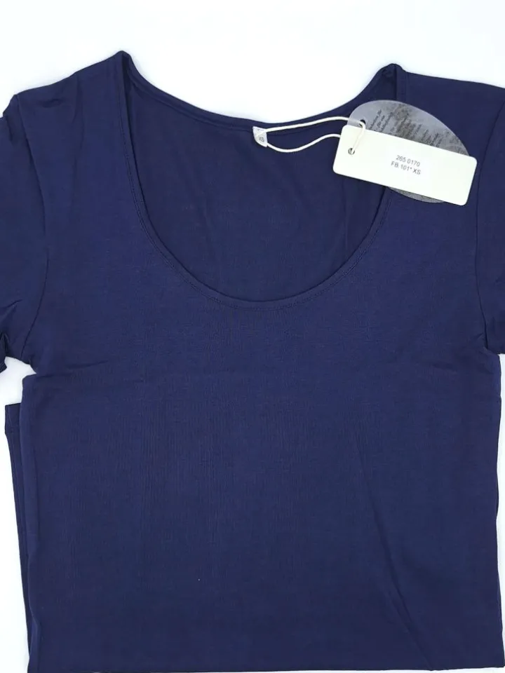Die Hochwertigkeit des Stoffes (60% Seide, 40% Baumwolle kbA) wird durch den schlichten und eleganten Schnitt unterstrichen. Das T-Shirt hat kurze Ärmel und eine unkomplizierte Passform. Es kann als Oberbekleidungsteil, Unterwäsche oder auch als Nachtwäsche und Homewear getragen werden.