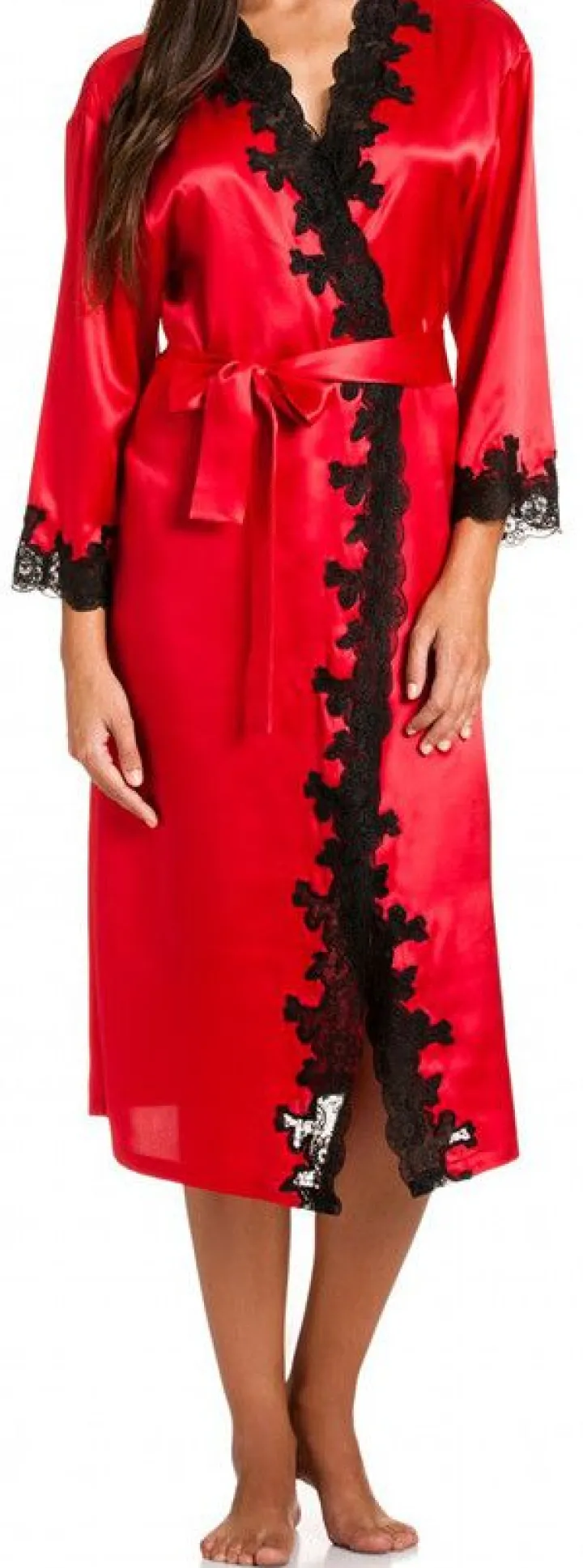 Seide Morgenmantel Sakhali rot oder schwarz mit Spitze von Gattina