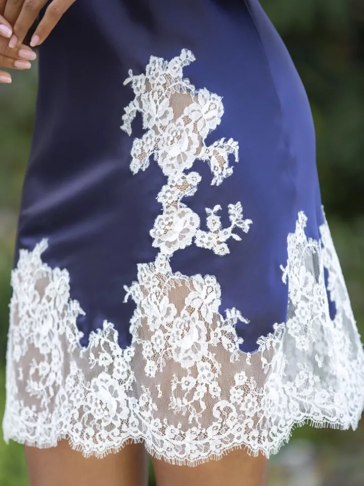 Seide Negligé mit Spitze Pearl No. 1 blau oder messing von Marjolaine