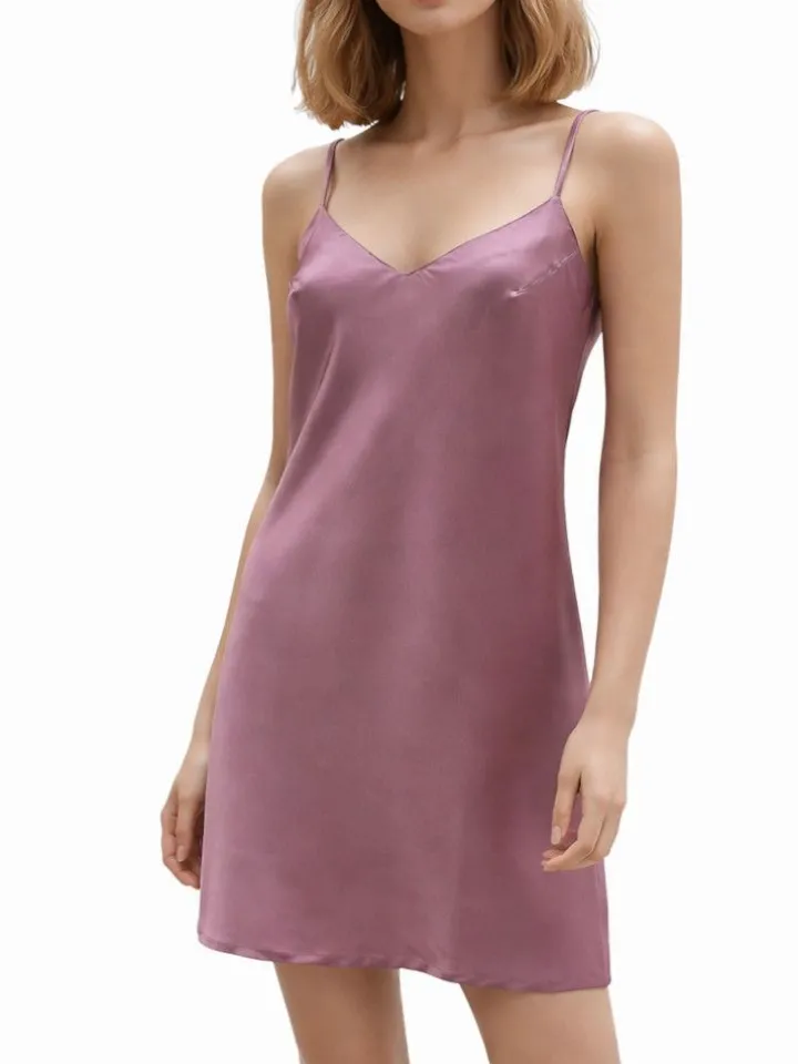 Das Seiden-Unterkleid Pandora ist ca. 85 cm lang und hat feine, in der Länge verstellbare Spaghettiträger. Diese edle Seidenwäsche ist in der Farbe malve in den italienischen Größe S bis XL (entspricht etwa 36 bis 42 ) erhältlich.