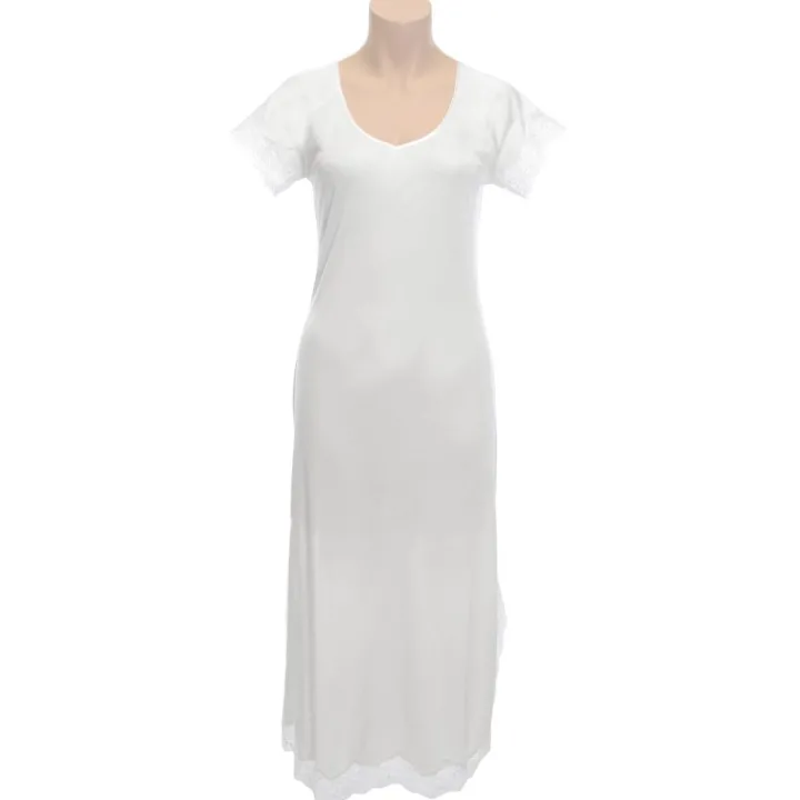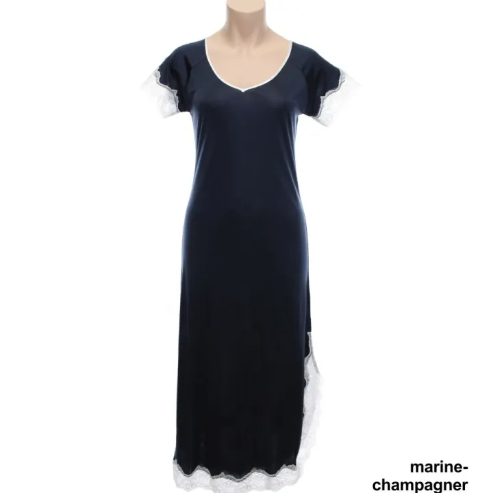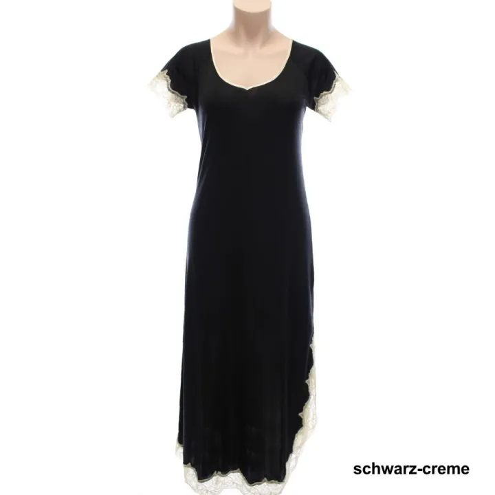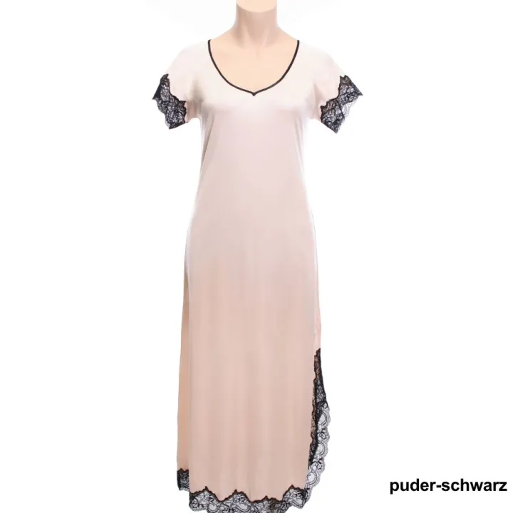 Seide Kurzarm Nachthemd lang Mahé von Nightdreams mit Spitze
