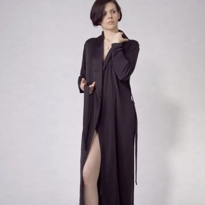 Dieser unkomplizierte Morgenmantel ist aus feingestrickter Wirkseide (Interlock Seidenjersey aus 60% Seide, 40% Viscose) hergestellt. Das Material fällt fließend und hat ein Flächengewicht von 150 g/m². Wäsche aus Wirkseide ist optimal für Damen, die die Vorzüge der Seide schätzen, aber eine Alternative zum glatten Seidensatin suchen. Da Jersey-Seide zudem kaum knittert, ist diese Seidenwäsche auch auf Reisen bestens geeignet.