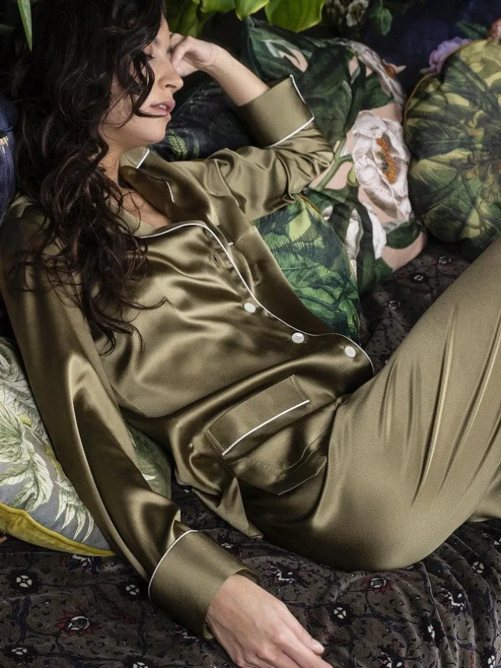 Tip: Dieser Seiden-Schlafanzug ist „nur zum Schlafen“ fast zu schade und kann auch als eleganter Hausanzug getragen werden.