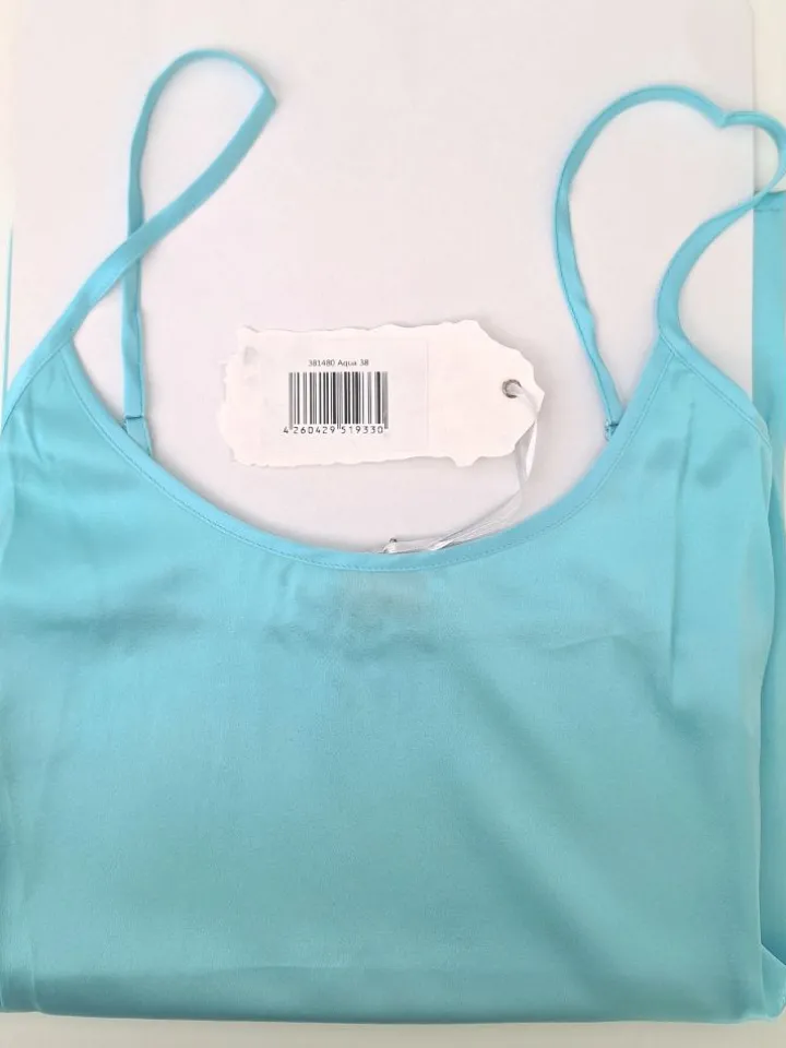 Das in leichter A-Linie geschnittene Seidentop mit verstellbaren Spaghetti- Trägern ist besonders kombinationsfreudig: Es ist als Oberbekleidung oder als Unterwäsche zu verwenden und mit der separat erhältlichen Pyjamahose oder Shorts kann man es in einen seidigen Pyjama oder Hausanzug verwandeln. Das Spaghettiträger-Top ist etwa 65 cm lang und in den folgenden Farben erhältlich: