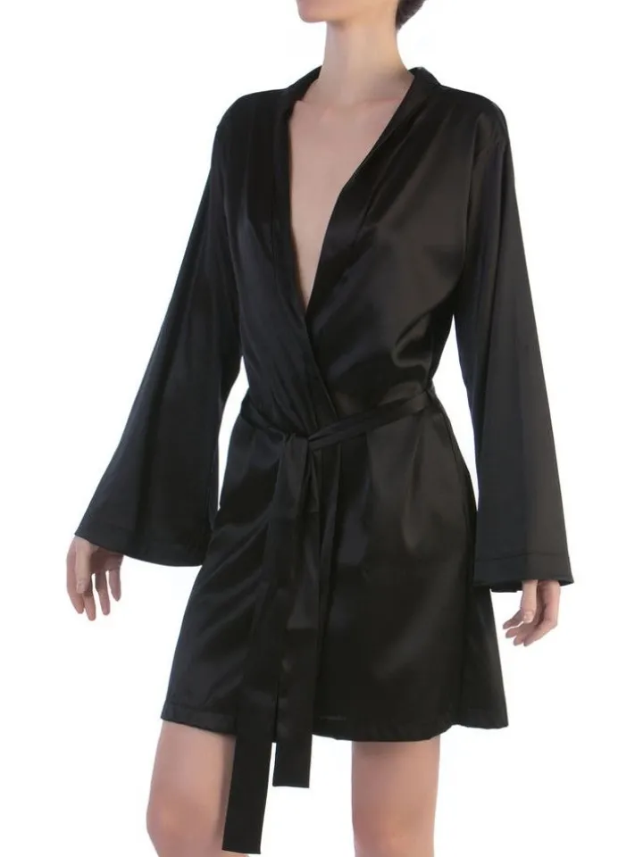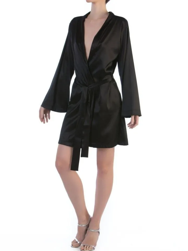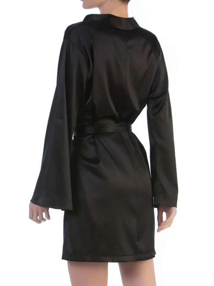 Der seidene Kimono Intrepido von Cotton Club ist Seidenwäsche der Luxus- Klasse. Das edle Teil besteht aus glänzendem Seiden-Stretchsatin. Der Satin dieses gemütlichen Morgenmantels besteht aus 91% Seide, 7% Elasthan, 2% Polyester. Durch den Elasthan Anteil wird die Passform verbessert und der Tragekomfort erhöht.