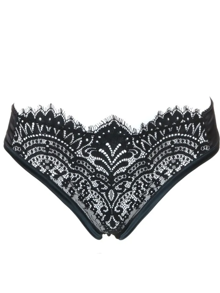 Der Black Swan Spitzen Slip von Prelude Milano ist Spitzenwäsche Made in Europe. Das edle Teil besteht aus floraler Eye-Lash Spitze und glänzendem Stretchsatin. An den Seiten, sowie im Schritt ist der Slip mit dem gemütlichen Satin ausgelegt, welcher angenehm auf der Haut liegt.