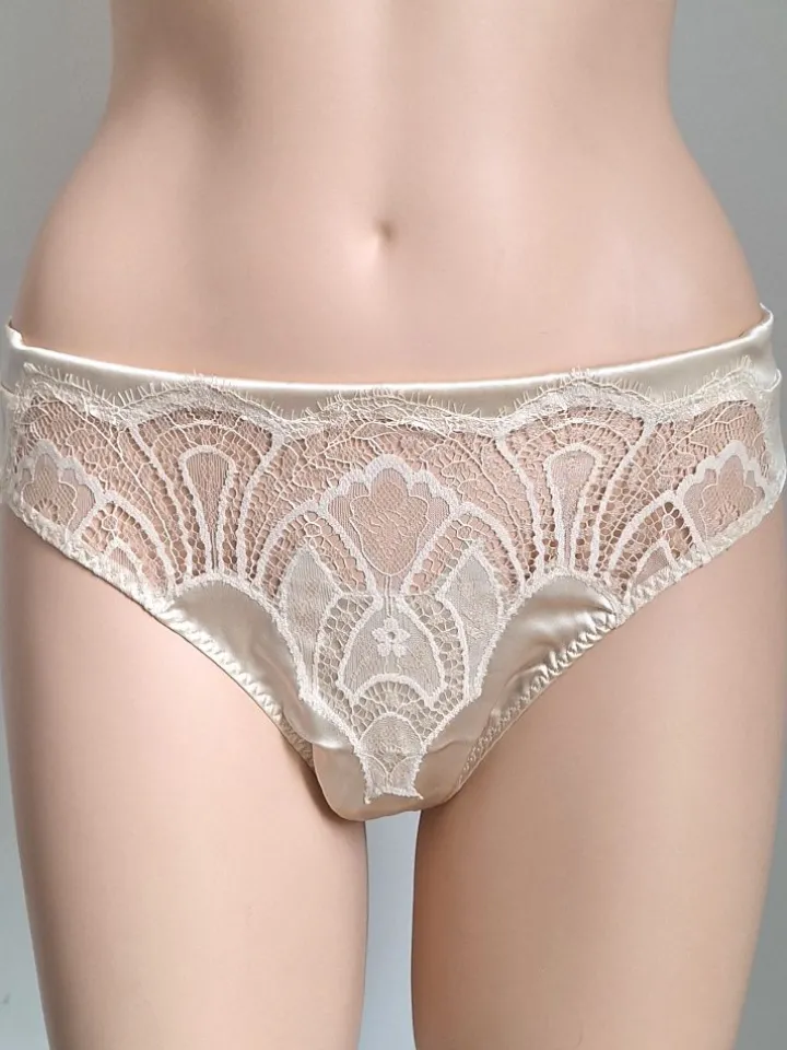 Der Slip Zafrina von Cotton Club ist Seidenwäsche der Luxus- Klasse. Das edle Teil besteht aus glänzendem Seiden-Stretchsatin und exquisiter Eye-Lash Spitze. Der Seidenteil dieses Slips besteht dabei aus elastischer Seide mit Elasthananteil, die Spitze ist aus Polyamid gefertigt. Der Slip aus der Kollektion „The Templar Treasure“ ist im vorderen Teil teiltransparent aus Spitze gefertigt. Die Rückseite ist innen mit weichem elastischen Tüll abgefüttert. Die Beinausschnitte und der obere Bund sind mit Gummizugbündchen versehen und der Slip hat einen Innenzwickel aus Baumwolljersey.