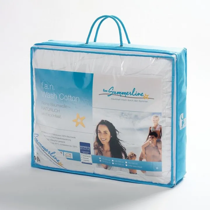 Diese Bettdecke wird in einer Tragetasche geliefert, in welcher sie gelagert werden kann, wenn sie jahreszeitbedingt nicht benötigt wird.