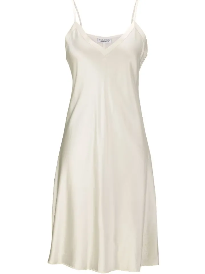 Das hautschmeichelnde, weiche Material aus 96% Seide fällt fließend und schmeichelt der Trägerin mit seinem edlen Glanz. Durch seine hochwertige Verarbeitung und die schicken Details ist dieses Seiden Nachthemd auch als Unterkleid verwendbar. Dieses Damen Nachthemd besteht aus Seidensatin. Die glatte Seide hat eine luxuriöse Ausstrahlung, umschmeichelt die Haut, wirkt temperaturausgleichend und kleidet perfekt zu (fast) jeder Tageszeit… Das Seiden Nachthemd ist in den Größen XS bis XXL erhältlich, was den deutschen Damen- Größen 36 bis 46 entspricht.