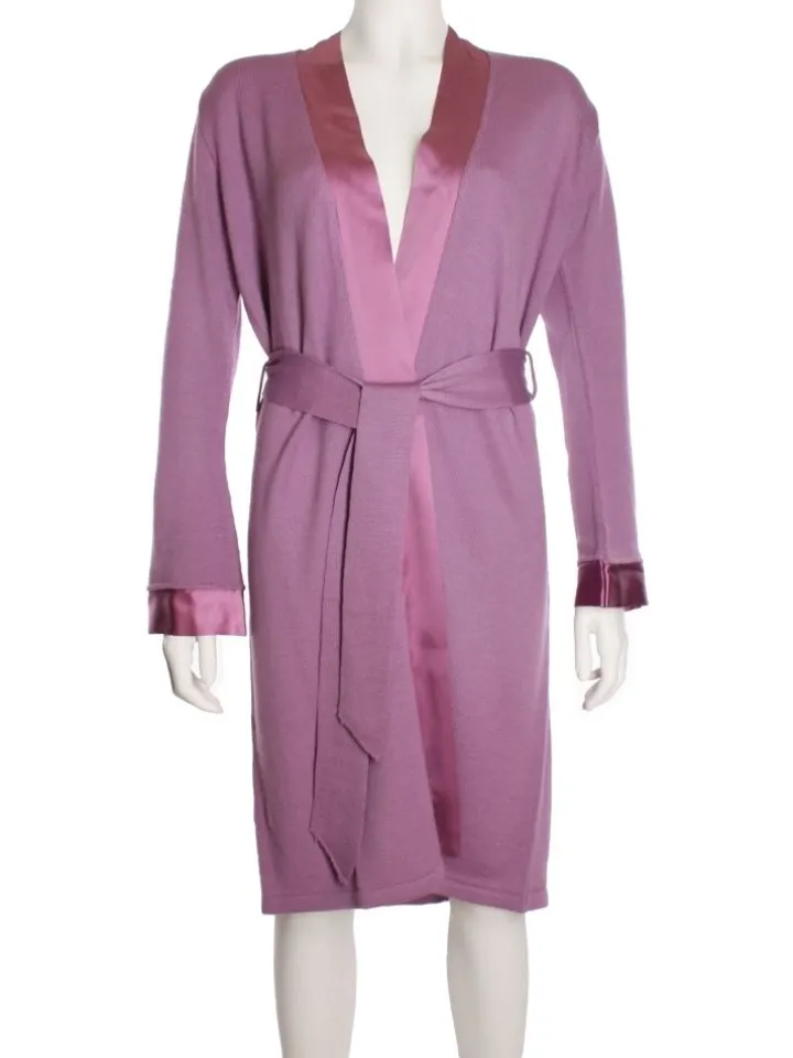 Dieser Hausmantel ist aktuell in der Farbe malve und in in den Größen 36 – 42 (deutsche Größen) erhältlich.