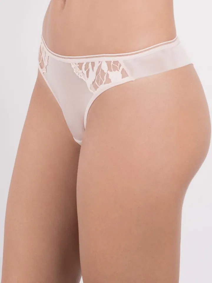 Der String Sin ist eine luxuriöse Lingerie der französischen Edel-Dessous Marke Maison Lejaby. Der String besteht aus weichem Tüll und bestickter Tüllspitze. Hinten ist er doppellagig gearbeitet und hat eine Mittelnaht. Die Abschlüsse sind elastisch und der Innenzwickel besteht aus Baumwolljersey.