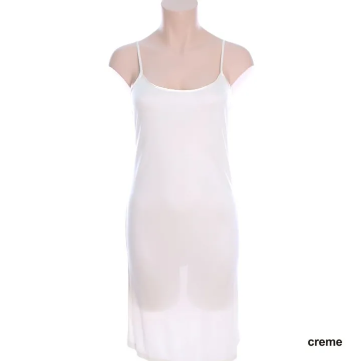 Das Spaghetti-Träger Unterkleid hat verstellbare Träger und ist etwa 90 cm lang. Durch den klassisch schlichten Schnitt und das angenehm hautfreundliche Material ist es sowohl als Unterkleid oder als Nachthemd verwendbar.