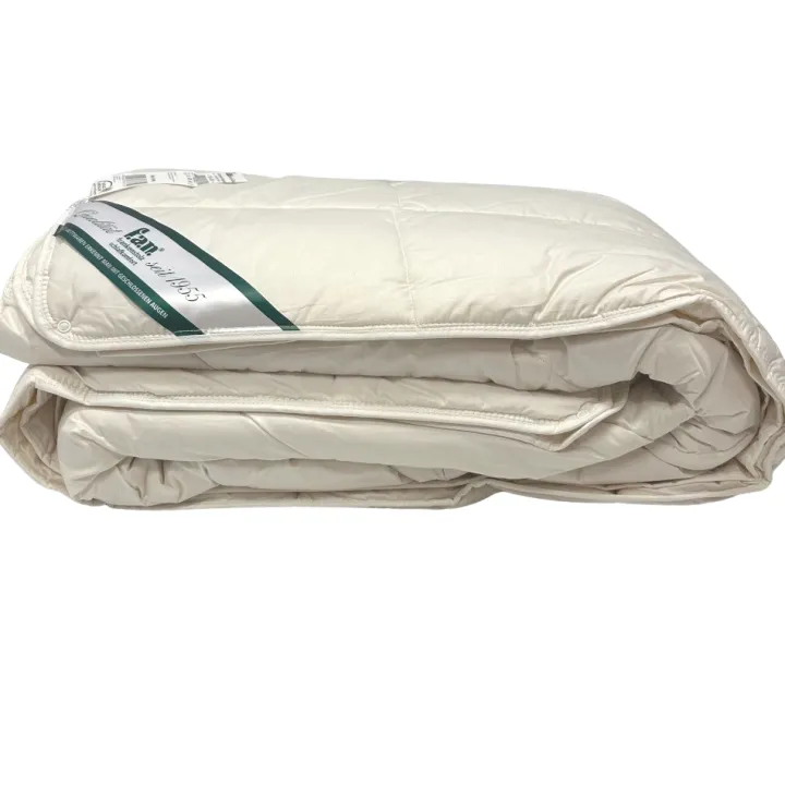 Diese f.a.n. Frankenstolz 4-Jahreszeiten Bettdecke besteht aus einer leichten Sommerbettdecke (1-2 Wärmepunkte) und einer mittelwarmen Bettdecke für die Übergangszeit (3-4 Wärmepunkte) mit Füllung aus Schafwolle (97%) und einem Oberstoff aus 100% Baumwollebatist. Beide Bettdecken lassen sich über Druckknöpfe zu einem Winterbett verbinden.