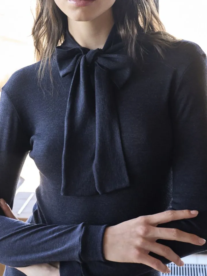 Wolle-Seide Shirt Briseide mit Schleife am Kragen von Boglietti